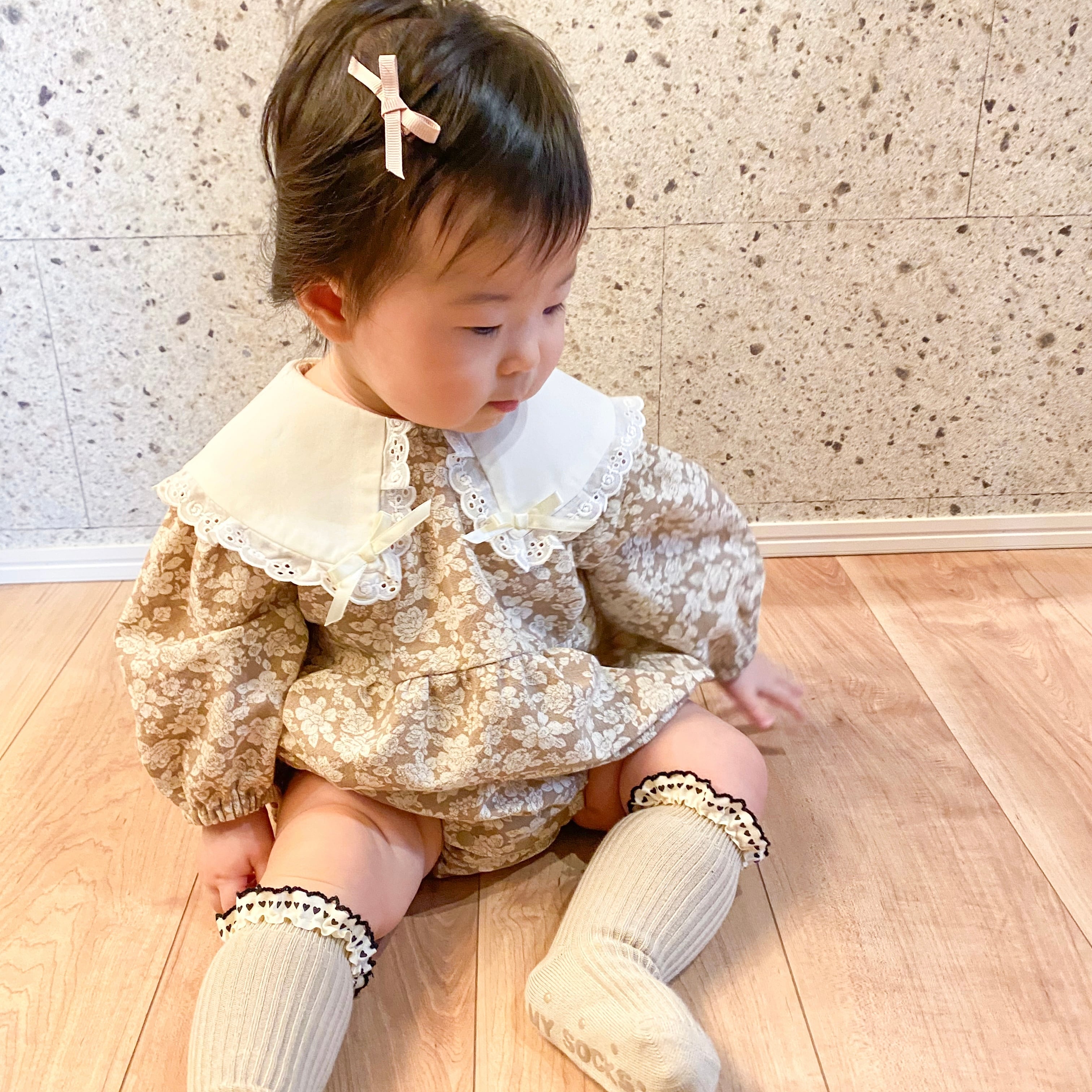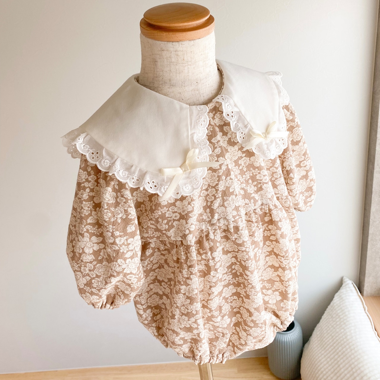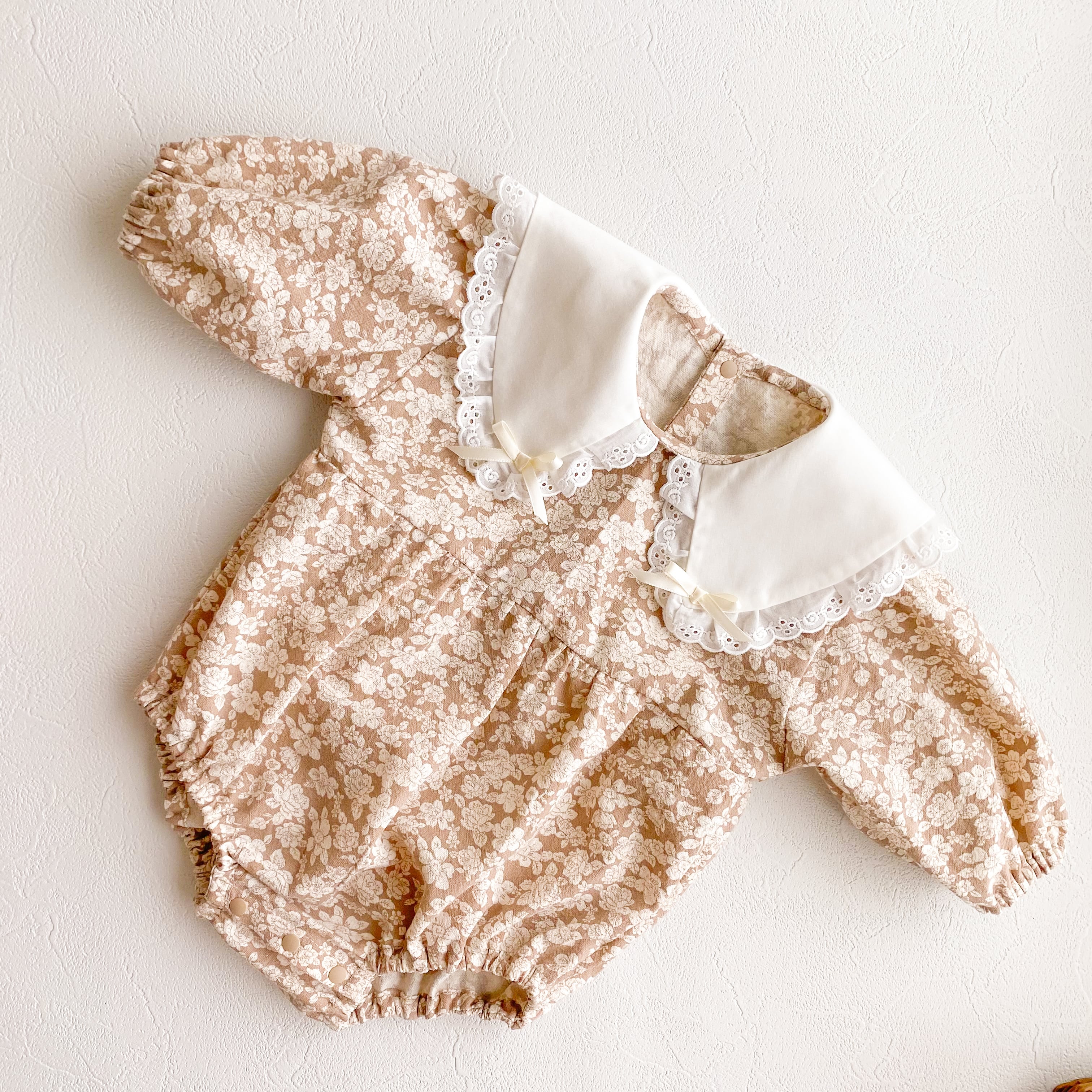 秋のおしゃれを楽しむロンパース、frill collar romper – classic garden。